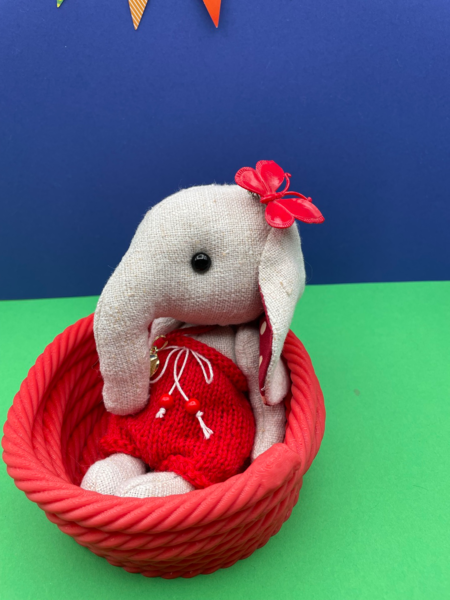 Der Kopf ist mit Baumwollfaser fest gestopft.